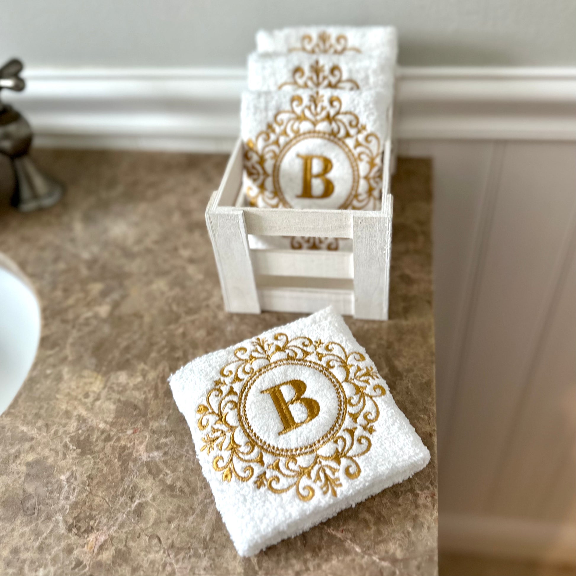 The towels are embroidered with your selected initials in a color of your choice and and available in a variety of designs.
